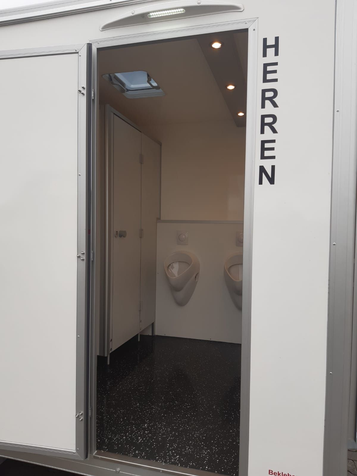 Das Abwasser wird an Ort und Stelle durch das öffentliche Kanalnetz entsorgt. Der Wagen ist mit 6m 100er HT-Rohren und passenden Bögen ausgestattet.